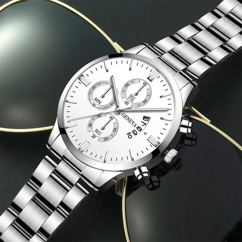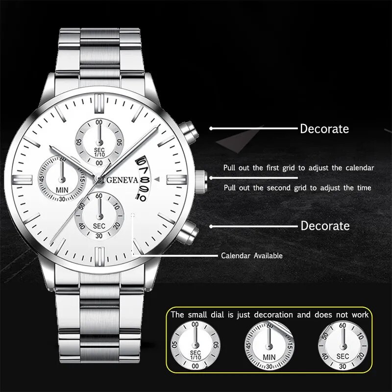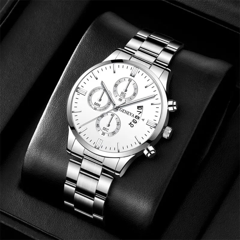2023 Fashion Mens Watches for Men Luxury Silver Stainless Steel Quartz Wrist Watch Man Business Calendar Watch Reloj Hombre